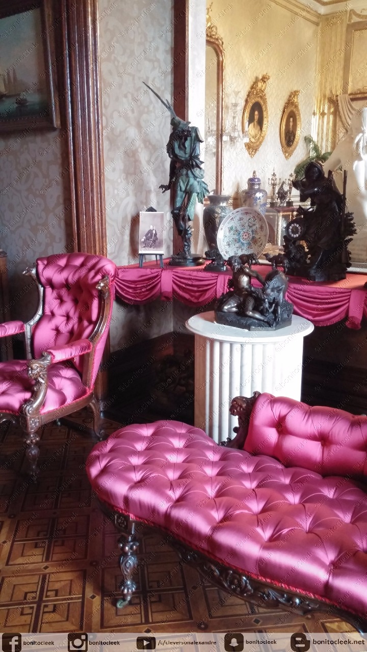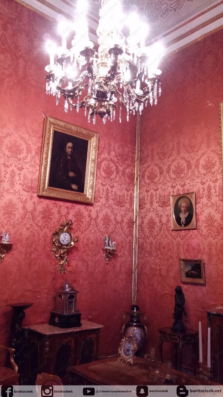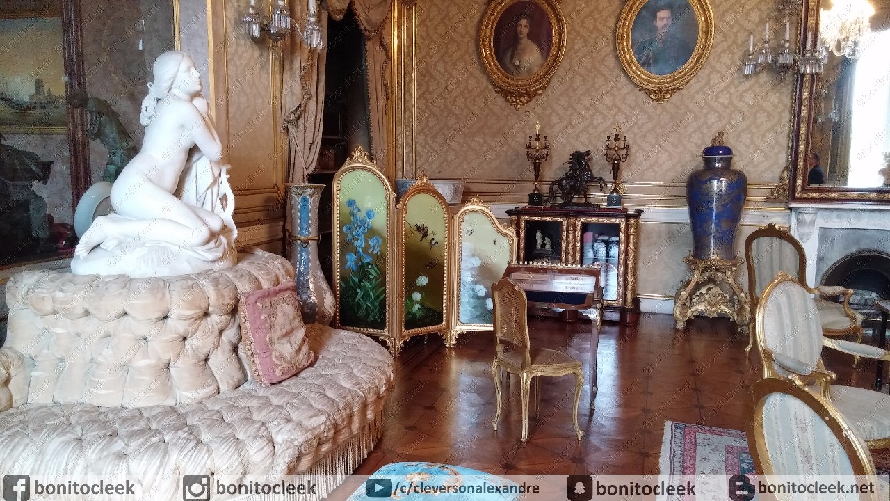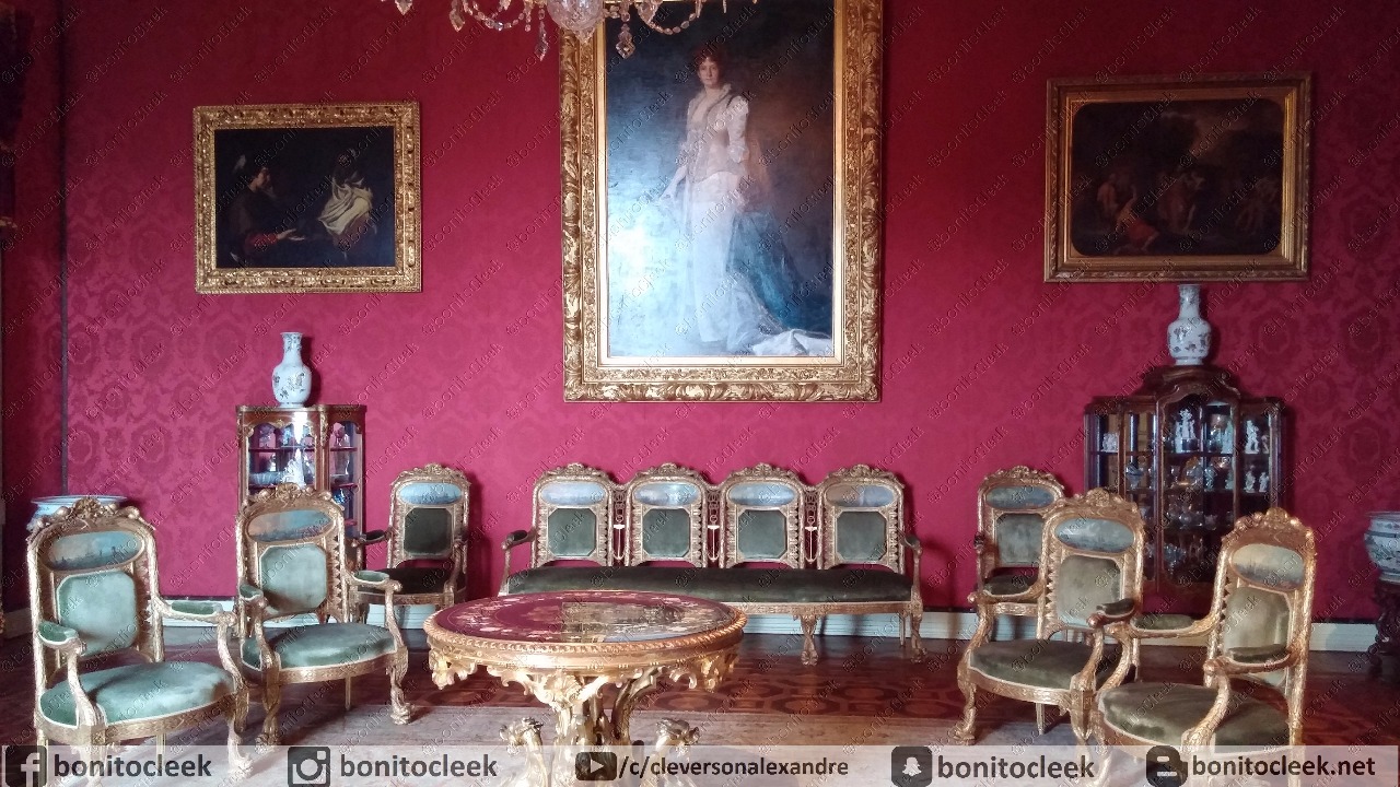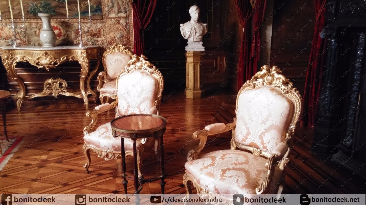 Os cânones decorativos em voga (Cânones? O que é isso? Ai gente, tive que pesquisar... também não sabia. - É uma espécie de vara que foi utilizada como instrumento de medidas.), na segunda metade do século XIX tornaram imprescindível a criação de uma sala de estar familiar, até então inexistente. De 1863 a 1865 esta sala foi inteiramente reformulada, ao gosto da rainha, pelo arquiteto da Casa Rel.