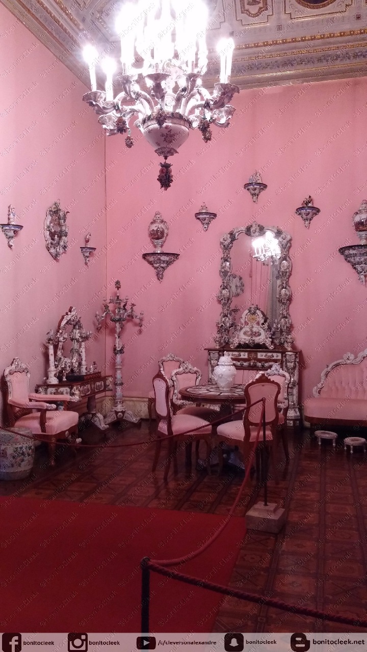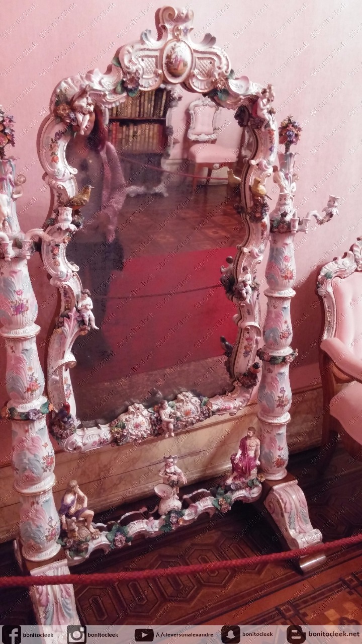 Olha só... naquela época, a rainha já ditava moda. D. Maria Pia expôs no primeiro dos seus aposentos privados, uma das coleções mais apreciadas no século XIX: peças em porcelana de Saxe, proveniente da fábrica de Meissen, situada na região germânica de Saxe.